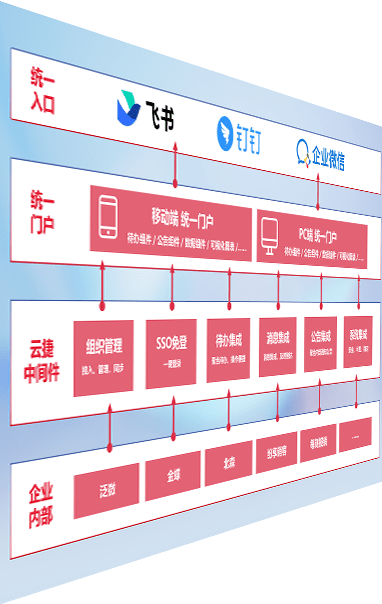 对协作平台提供支持服务,,支持企业应用与协作平台对接,,包含组织同步、、消息集成、、待办集成等。。支持目前主流的协作平台:钉钉、、、企微和飞书。。。